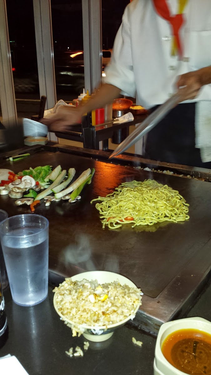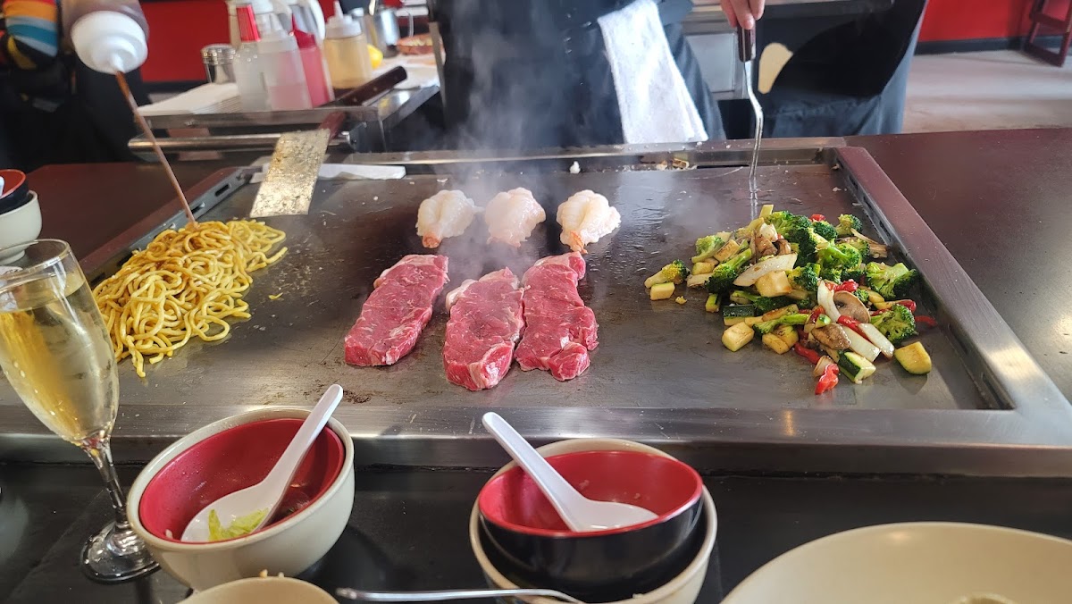 Came for dinner on a Thursday around 5pm. Sever was attentive, we ordered the steak and hibachi. The order comes with clear onion soup and a salad before the meal comes. We got fried rice, steak, shrimp, vegetables and lo mein. The food was fantastic. I really enjoyed the food. The chef was funny and a very good entertainer and chef. Food was perfectly cooked. I highly recommend and would go back.