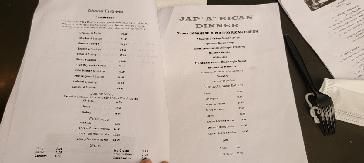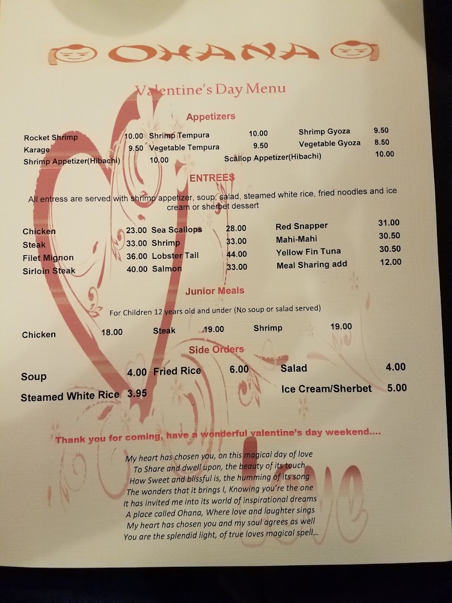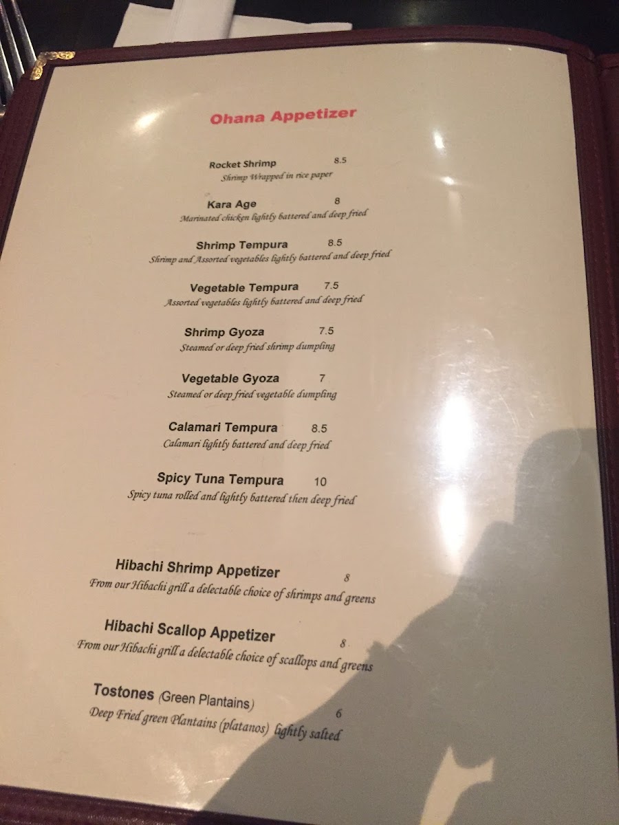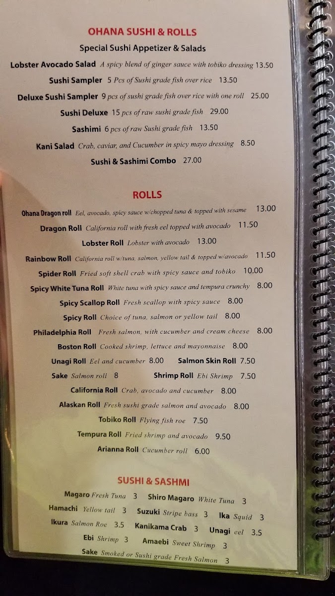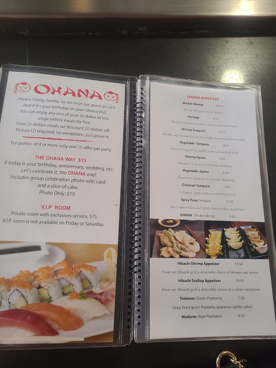 Ohana Japanese Hibachi Seafood & Steakhouse Menu